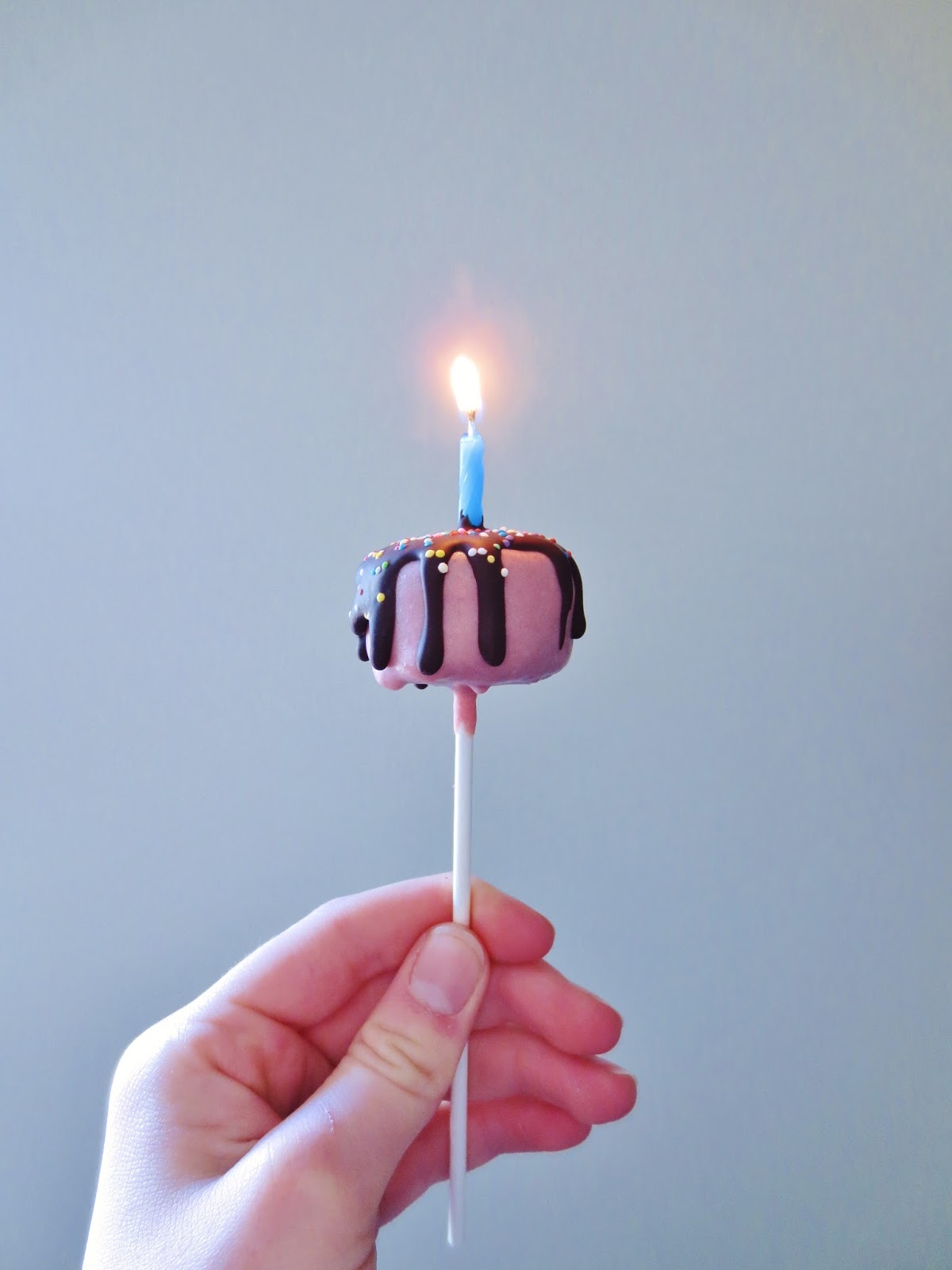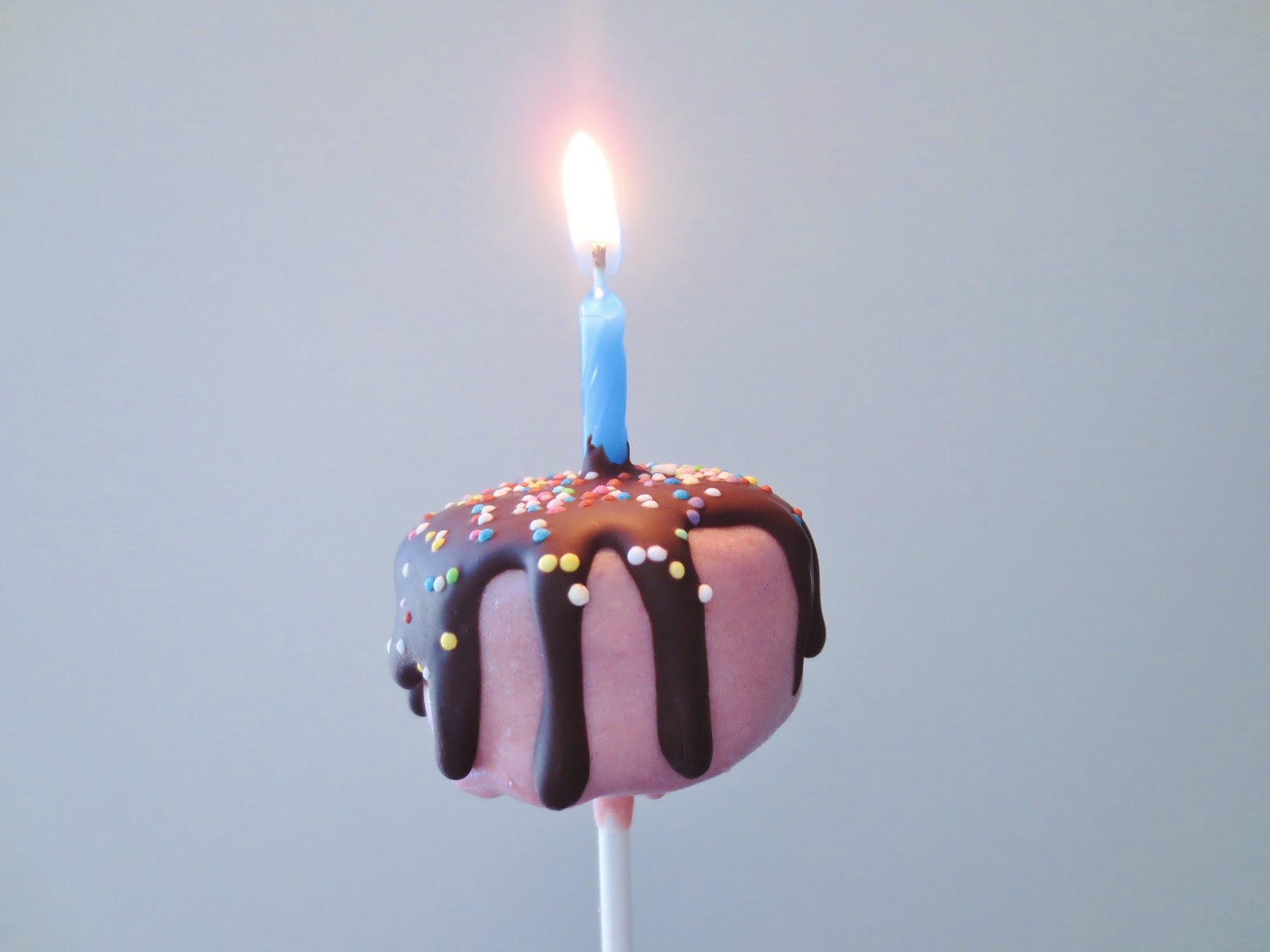 Die Cake Pops in einen Styroporblock stecken und noch bevor die Candy Melts hart sind, eine Geburtstagskerze pro Cake Pop vorsichtig hineinstecken.