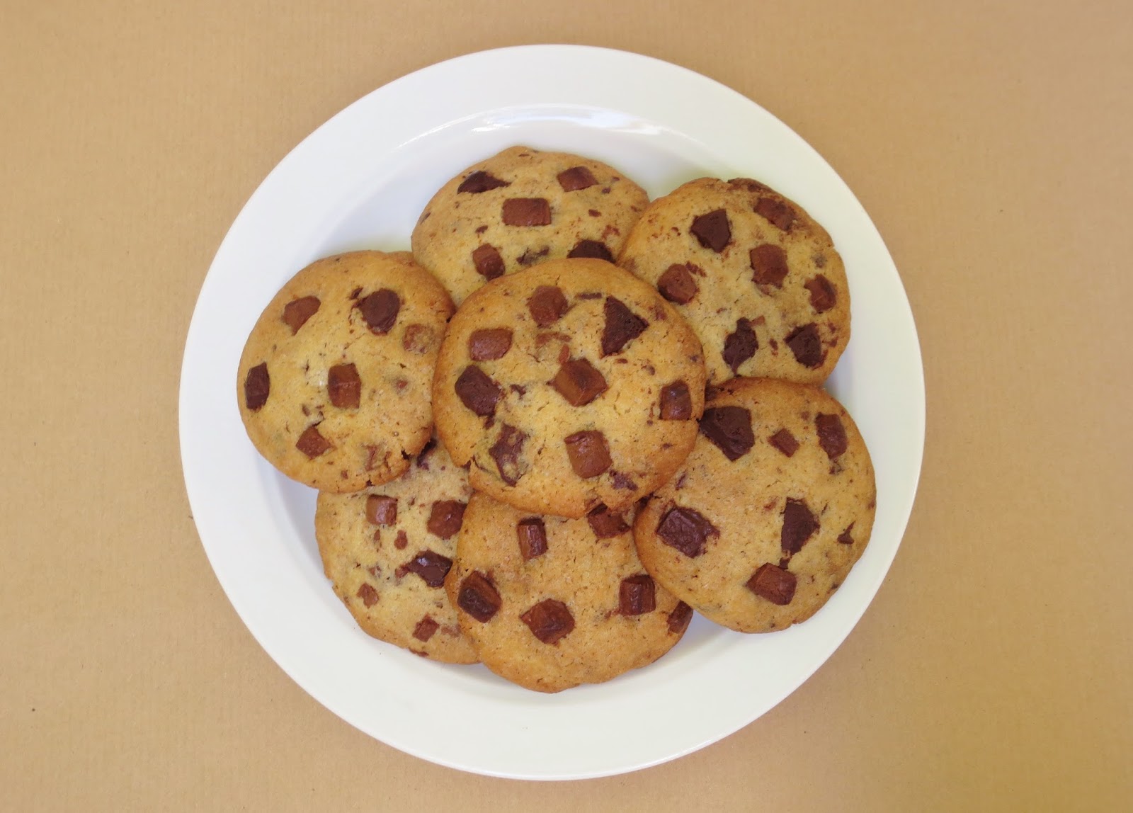 Ofen auf 190 °C vorheizen. Mit einem Teelöffel etwa 40 g Teig abnehmen und diesen mit den Händen zu einer Kugeln formen, dann etwas platt drücken und auf ein Backpapier setzen. Weitere Kugeln mit viel Abstand daneben setzen. Die Kugeln mit der restlichen Schokolade bestreuen und diese leicht andrücken.